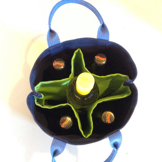 This bag is designed to carry wine, beer, a growler, 4-pack, 6-pack, coffee, water, or a combination of all of these. The fabric dividers can stay along the sides of the bag or be pulled out to hold your bottle from tipping sideways in the bag. It works great as a lunch bag, a water bottle bag for your kids in sports, or taking hot chocolate to the local pond.