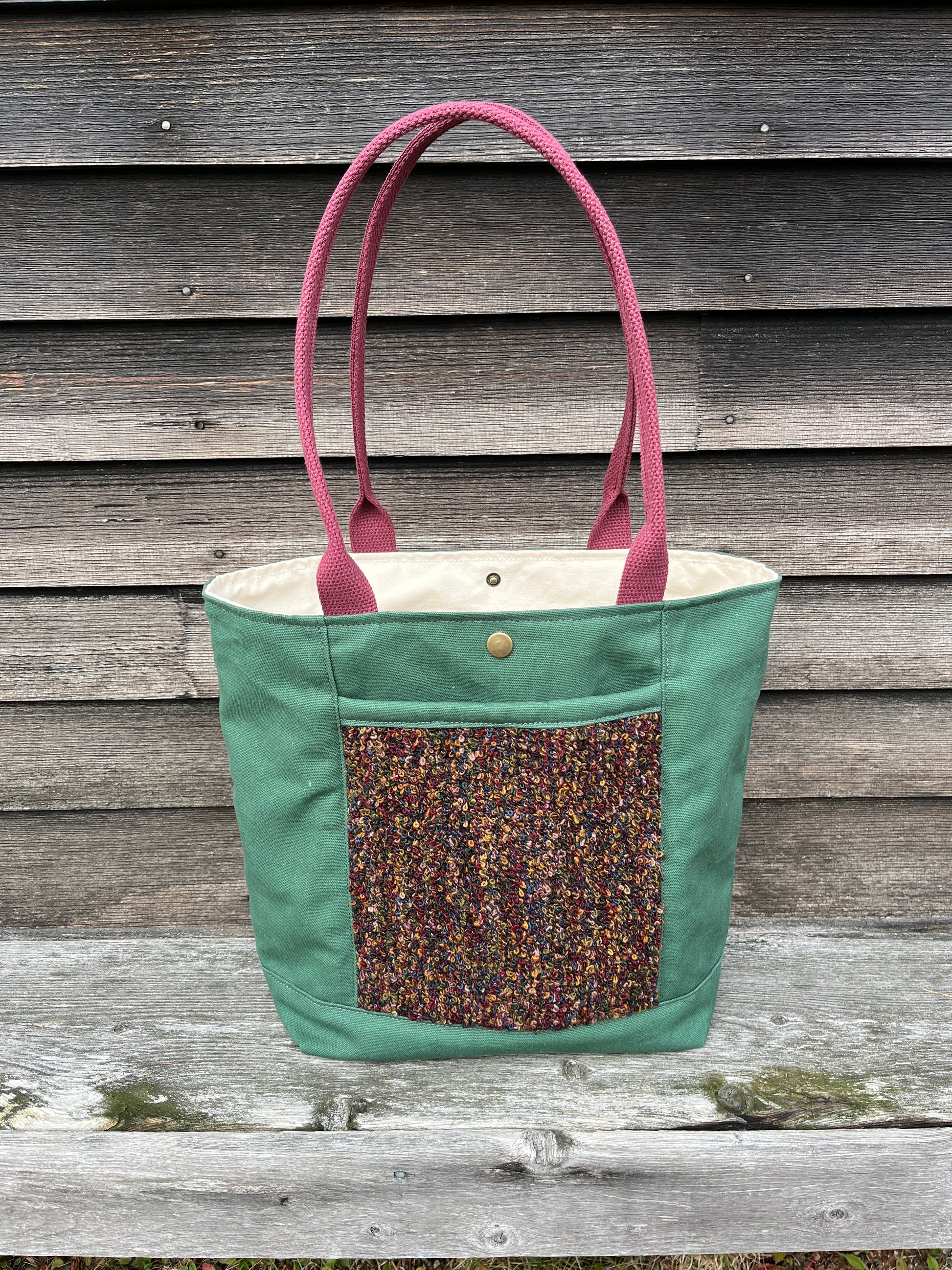 Bent Snap Tote 122 - Burgundy multi textile / Green canvas