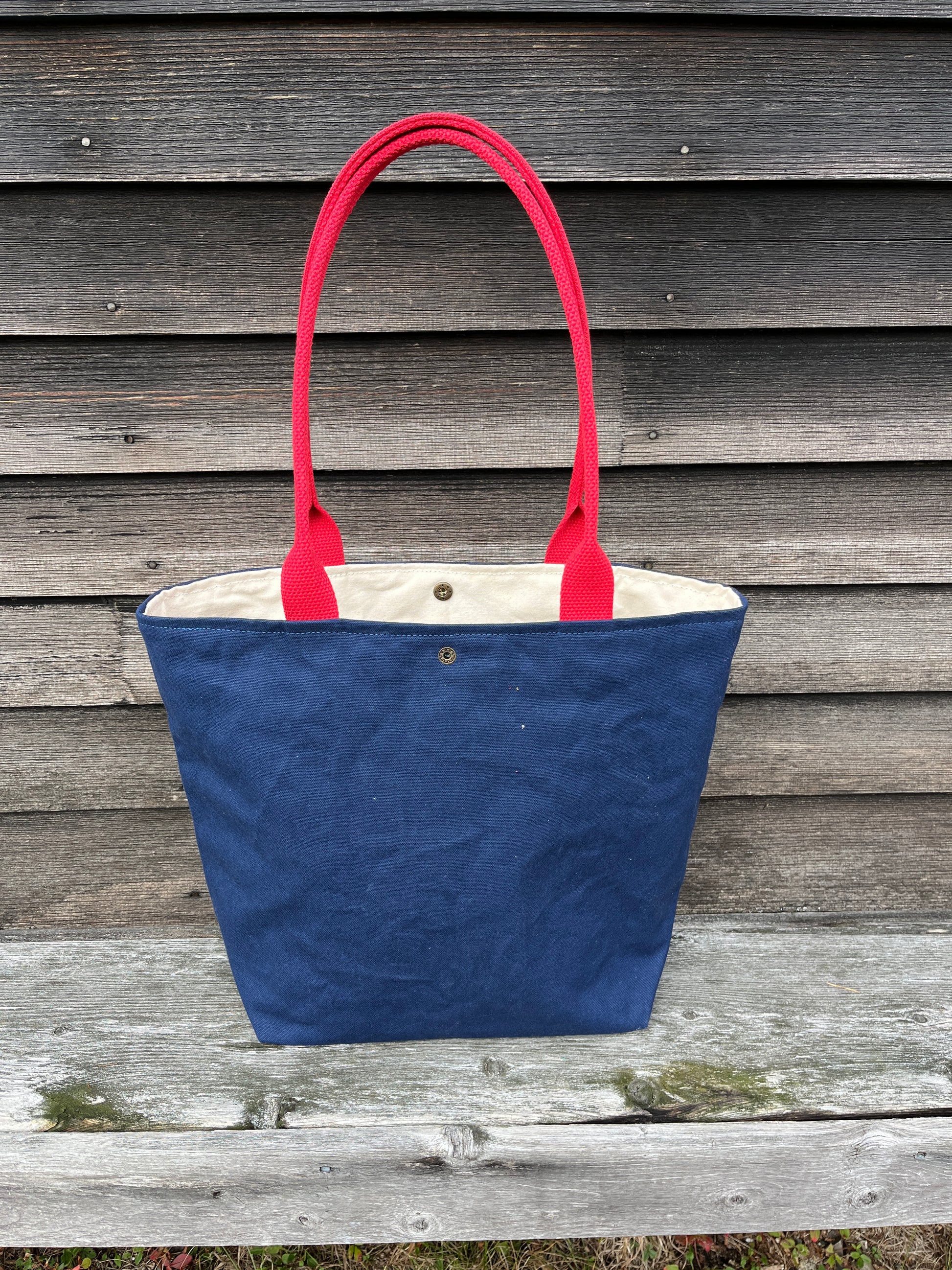 Bent Snap Tote 124 - Red textile / Navy canvas