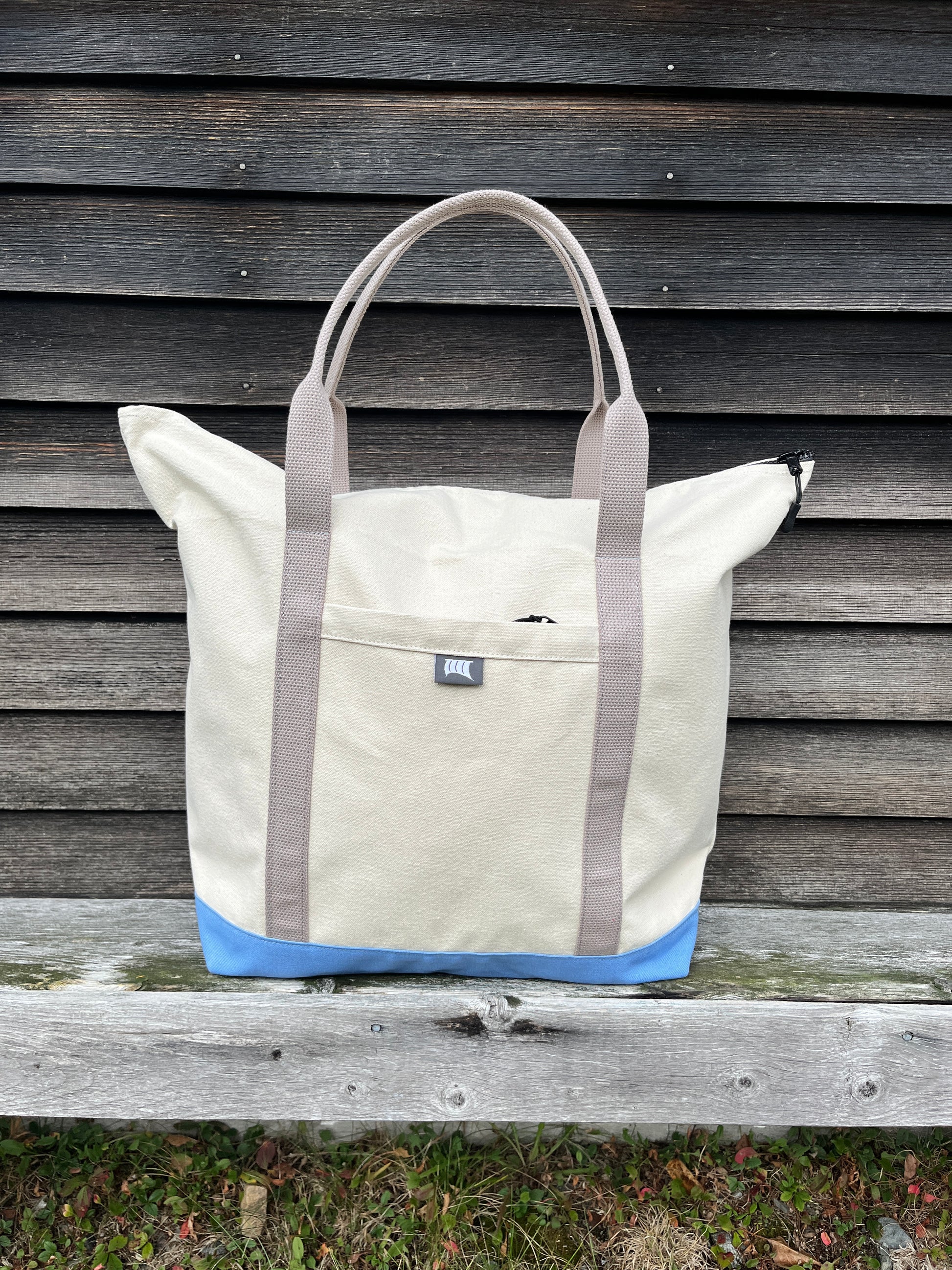 Materials: 15oz cotton canvas, cotton webbing, plastic tooth zippers.