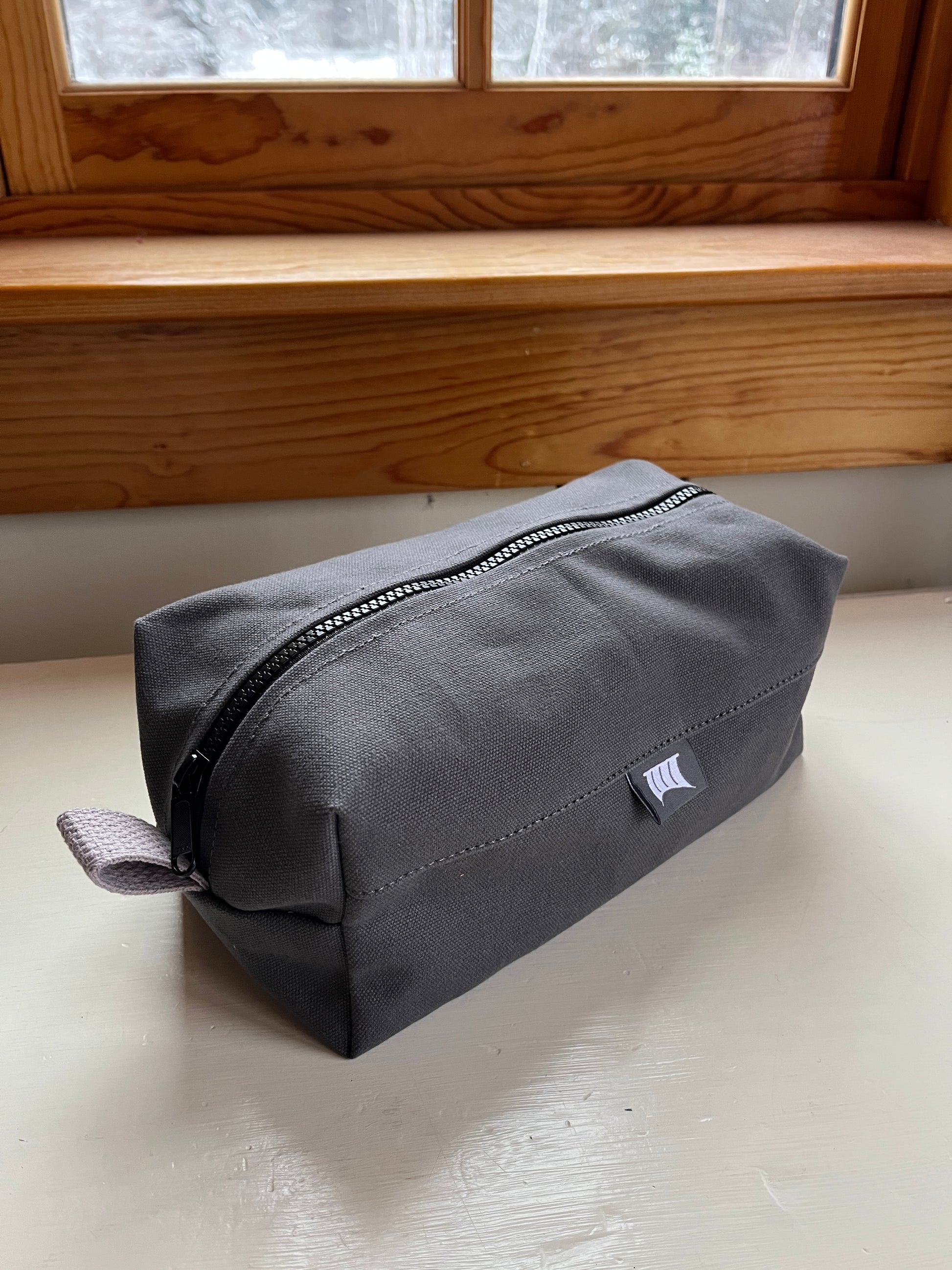 This little bag is great for toiletries, a tool kit, desk supplies, small lunch bag, toys, etc… Anything that needs containing while on the go.
